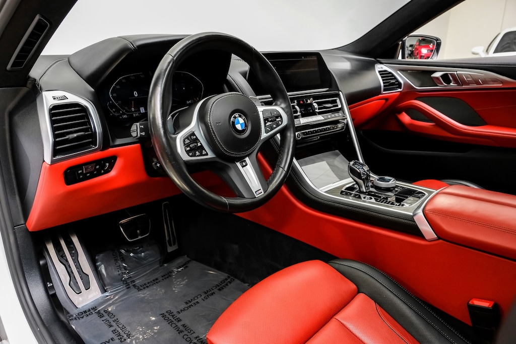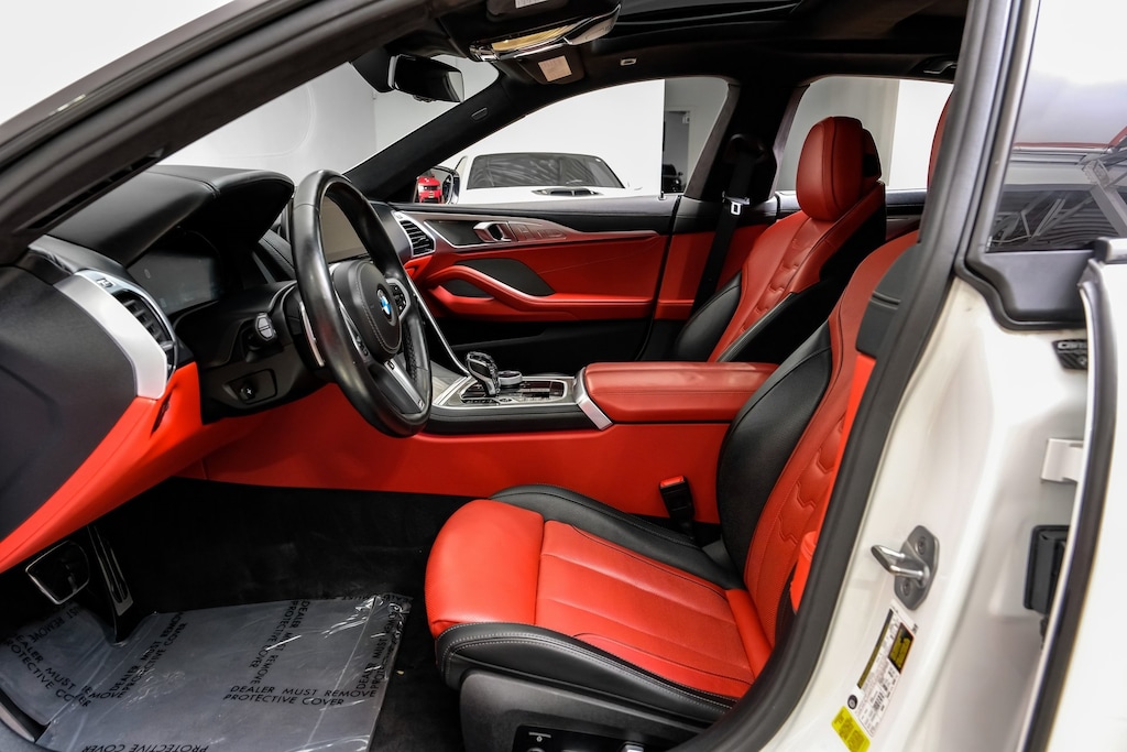 *Bluetooth / Hands Free Cell Phone*, *Moonroof/Sunroof, *Rear Backup Camera*, *Navigation*, *Leather*, *One Owner*, *Remainder of Factory Warranty*, *Apple Carplay/Android Auto, *Non Smoker*, 8 Series 840, 4D Sedan, 3.0L I6 DOHC 24V TwinPower Turbo, 8-Speed Automatic Sport, RWD, Mineral White Metallic, Fiona Red/Black Fiona Red/Black Extended Merin, Active Blind Spot Detection, Active Driving Assistant, Active Driving Assistant Pro, Active Park Distance Control, Alloy wheels, Comfort Seating Package, Drive Recorder, Driving Assistance Package, Driving Assistance Professional Package, Extended Traffic Jam Assistant, Front & Rear Heated Seats, Front Ventilated Seats, harman/kardon® Speakers, Heated front seats, Heated Front Seats, Armrests & Steering Wheel, Navigation System, Parking Assistant Plus, Power moonroof: Panorama, Power Rear Sunshade & Rear Side Window Shades, Rear-View Camera, Surround View w/3D View, Wheels: 20" x 8" Fr & 20" x 9" Rr M V-Spoke, 16 Speakers, 4-Wheel Disc Brakes, ABS brakes, Air Conditioning, AM/FM radio: SiriusXM with 360L, Anthracite Alcantara Headliner, Apple CarPlay & Android Auto Compatibility, Apple CarPlay Compatibility, Auto High-beam Headlights, Auto tilt-away steering wheel, Auto-dimming door mirrors, Auto-dimming Rear-View mirror, Automatic temperature control, BMW Assist eCall, BMW TeleServices, Brake assist, Bumpers: body-color, Delay-off headlights, Door auto-latch, Driver door bin, Driver vanity mirror, Dual front impact airbags, Dual front side impact airbags, Electronic Stability Control, Emergency communication system: BMW Assist eCall, Extended Merino Leather Upholstery, Exterior Parking Camera Rear, Four wheel independent suspension, Front anti-roll bar, Front Bucket Seats, Front Center Armrest, Front dual zone A/C, Front reading lights, Fully automatic headlights, Garage door transmitter, Genuine wood console insert, Glass Controls, harman/kardon Surround Sound System, Heads-Up Display, Heated door mirrors, Heated steering wheel, Illuminated entry, Leather Shift Knob, Leather steering wheel, Live Cockpit Pro w/Navi, Low tire pressure warning, M Sport Brakes w/Black Calipers, Memory seat, Multi-Functional Seats, Occupant sensing airbag, Outside temperature display, Overhead airbag, Panic alarm, Passenger door bin, Passenger vanity mirror, Power door mirrors, Power driver seat, Power passenger seat, Power steering, Power windows, Radio data system, Radio: AM/FM Audio System, Rain sensing wipers, Rear air conditioning, Rear anti-roll bar, Rear dual zone A/C, Rear Window Blind, Rear window defroster, Remote keyless entry, Security system, SiriusXM w/360L, Speed control, Speed-sensing steering, Speed-Sensitive Wipers, Split folding rear seat, Sport steering wheel, Steering wheel memory, Steering wheel mounted audio controls, Tachometer, Telescoping steering wheel, Tilt steering wheel, Traction control, Trip computer, Turn signal indicator mirrors, Variably intermittent wipers, WiFi Hotspot, Wireless Charging, Go Luxury Black Out Package, Original Msrp $91345, 8 Series 840, 4D Sedan, 3.0L I6 DOHC 24V TwinPower Turbo, 8-Speed Automatic Sport, RWD, Mineral White Metallic, Fiona Red/Black Fiona Red/Black Extended Merin, Active Blind Spot Detection, Active Driving Assistant, Active Driving Assistant Pro, Active Park Distance Control, Alloy wheels, Comfort Seating Package, Drive Recorder, Driving Assistance Package, Driving Assistance Professional Package, Extended Traffic Jam Assistant, Front & Rear Heated Seats, Front Ventilated Seats, harman/kardon® Speakers, Heated front seats, Heated Front Seats, Armrests & Steering Wheel, Navigation System, Parking Assistant Plus, Power moonroof: Panorama, Power Rear Sunshade & Rear Side Window Shades, Rear-View Camera, Surround View w/3D V