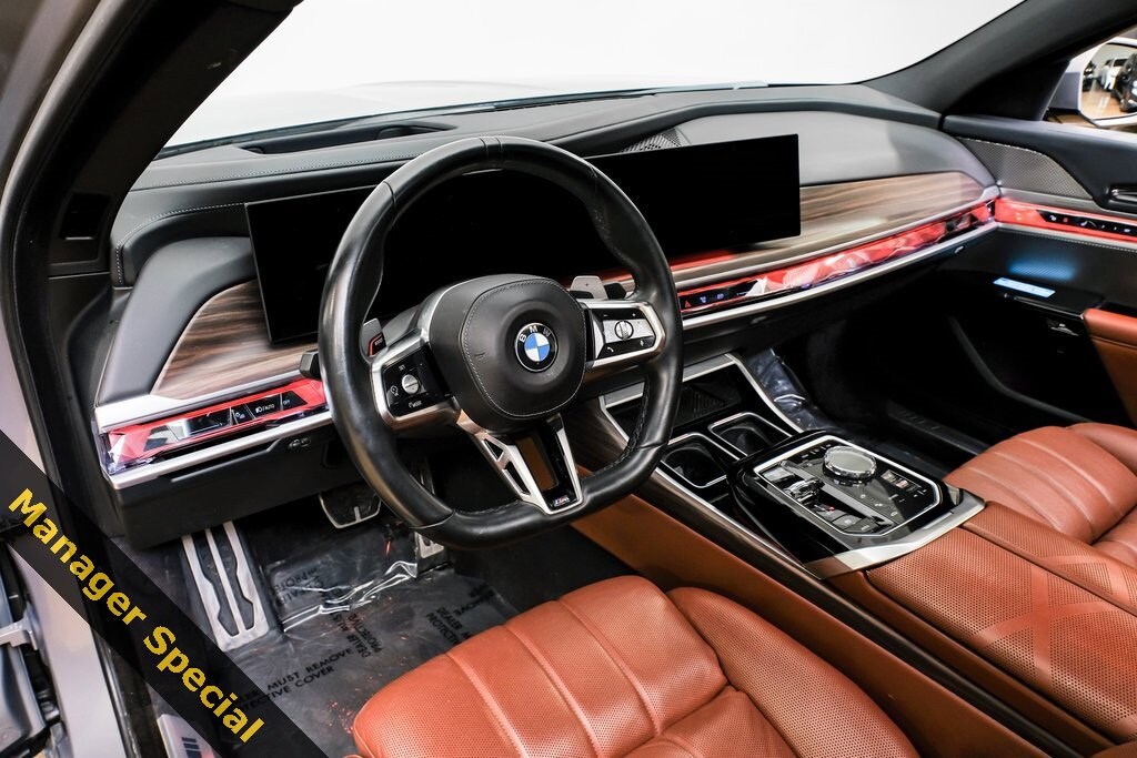 *Bluetooth / Hands Free Cell Phone*, *Service Records Available*, *Moonroof/Sunroof, *Rear Backup Camera*, *Navigation*, *Leather*, *One Owner*, *Remainder of Factory Warranty*, *Apple Carplay/Android Auto, *Non Smoker*, 7 Series 760i xDrive, 4D Sedan, 4.4L V8 32V Twin Turbocharged, 8-Speed Automatic Sport, AWD, Oxide Gray Metallic, Tartufo Tartufo Extended Merino Leathe, Alloy wheels, Connected Package Pro, Extended Merino Leather Upholstery, Extended Shadowline Trim, Front Massaging Seats, Front Ventilated Seats, Heated front seats, Heated rear seats, Luxury Rear Seating Package, M Sport Brakes w/Black Calipers, M Sport Package Pro, M Sport Pro Contents, M Sport Professional Package, Multifunction Rear Seats, Navigation System, Navigation system: BMW Maps Navigation, Parking Assistance Package, Parking Assistant Professional, Rear Massaging Seats, Rear Spoiler, Rear Ventilated Seats, Surround View w/3D View, Wheels: 20" M Aerodynamic Bi-Color Style 907, 18 Speakers, 4-Wheel Disc Brakes, ABS brakes, Adaptive suspension, Air Conditioning, AM/FM radio: SiriusXM, Anti-whiplash front head restraints, Apple CarPlay & Android Auto Compatibility, Auto High-beam Headlights, Auto tilt-away steering wheel, Auto-dimming door mirrors, Auto-dimming Rear-View mirror, Auto-leveling suspension, Automatic temperature control, BMW TeleServices, Bowers & Wilkins Surround Sound, Brake assist, Bumpers: body-color, ConnectedDrive Services, Delay-off headlights, Door auto-latch, Driver door bin, Driver vanity mirror, Dual front impact airbags, Dual front side impact airbags, Electronic Stability Control, Emergency communication system: BMW Assist eCall, Enhanced USB & Bluetooth, Exterior Parking Camera Rear, Fineline Open Pore Wood Trim w/Piano Black Accents, Four wheel independent suspension, Front anti-roll bar, Front Bucket Seats, Front Center Armrest, Front dual zone A/C, Front reading lights, Fully automatic headlights, Garage door transmitter, Genuine wood dashboard insert, Head restraints memory, Heads-Up Display, Heated door mirrors, Heated steering wheel, Illuminated entry, Leather steering wheel, Live Cockpit Pro w/Navi, Low tire pressure warning, Memory seat, Multi-Functional Seats, Natural Interaction, Occupant sensing airbag, Outside temperature display, Overhead airbag, Overhead console, Panic alarm, Passenger door bin, Passenger vanity mirror, Personal eSIM 5G, Power adjustable front head restraints, Power door mirrors, Power driver seat, Power passenger seat, Power steering, Power windows, Radio data system, Radio: Audio System, Rain sensing wipers, Rear air conditioning, Rear anti-roll bar, Rear audio controls, Rear dual zone A/C, Rear reading lights, Rear seat center armrest, Rear Window Blind, Rear window defroster, Remote keyless entry, Security system, SiriusXM Satellite Radio, Speed control, Speed-sensing steering, Speed-Sensitive Wipers, Sport steering wheel, Steering wheel memory, Steering wheel mounted audio controls, Tachometer, Telescoping steering wheel, Tilt steering wheel, Traction control, Trip computer, Variably intermittent wipers, Ventilated front seats, Weather band radio, Go Luxury Black Out Package, Original MSRP $120,445, 7 Series 760i xDrive, 4D Sedan, 4.4L V8 32V Twin Turbocharged, 8-Speed Automatic Sport, AWD, Oxide Gray Metallic, Tartufo Tartufo Extended Merino Leathe, Alloy wheels, Connected Package Pro, Extended Merino Leather Upholstery, Extended Shadowline Trim, Front Massaging Seats, Front Ventilated Seats, Heated front seats, Heated rear seats, Luxury Rear Seating Package, M Sport Brakes w/Black Calipers, M Sport Package Pro, M Sport Pro Contents, M Sport Professional Package, Multifunction Rear Seats, Navigation System, Navigation system: BMW Maps Navigation, Parking Assistance Package, Parking A
