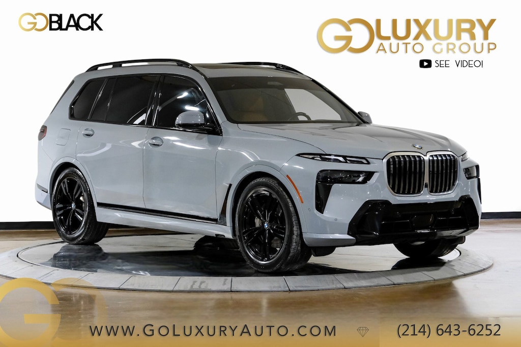 *Bluetooth / Hands Free Cell Phone*, *Moonroof/Sunroof, *Rear Backup Camera*, *Navigation*, *Leather*, *One Owner*, *Remainder of Factory Warranty*, *Apple Carplay/Android Auto, *Non Smoker*, X7 xDrive40i, 4D Sport Utility, 3.0L I6 DOHC 24V, 8-Speed Automatic Sport, AWD, Brooklyn Gray Metallic, Cognac Cognac Sensafin, 2nd Row Captain's Chairs, 5-Zone Automatic Climate Control, Active Driving Assistant Pro, Aerodynamic Kit, Alloy wheels, Anthracite Alcantara Headliner, Climate Comfort Package, Connected Package Pro, Drive Recorder, Driving Assistance Professional Package, Front & Rear Heated Seats, Front Ventilated Seats, Gesture Control, harman/kardon Surround Sound System, M Sport Package, M Sport Package (337), M Steering Wheel, Navigation system: BMW Maps Navigation, Parking Assistance Package, Parking Assistant Professional, Power moonroof: Panorama, Premium Package, Rear Electric Side Window Shades, Shadowline Exterior Trim, Soft-Close Automatic Doors, Surround View w/3D View, Wheels: 21" x 9.5" Double-Spoke Bi-Color Orbit Grey, Without Lines Designation Outside, 10 Speakers, 3.64 Axle Ratio, 3rd row seats: split-bench, 4-Wheel Disc Brakes, ABS brakes, Adaptive suspension, Air Conditioning, AM/FM radio: SiriusXM, AM/FM Stereo, Apple CarPlay & Android Auto Compatibility, Apple CarPlay Compatibility, Auto High-beam Headlights, Auto tilt-away steering wheel, Auto-dimming door mirrors, Auto-dimming Rear-View mirror, Auto-leveling suspension, Automatic temperature control, BMW Assist eCall, BMW TeleServices, Brake assist, Bumpers: body-color, Compass, ConnectedDrive Services, Delay-off headlights, Driver door bin, Driver vanity mirror, Dual front impact airbags, Dual front side impact airbags, Electronic Stability Control, Emergency communication system: BMW Assist eCall, Exterior Parking Camera Rear, Four wheel independent suspension, Front anti-roll bar, Front Bucket Seats, Front Center Armrest, Front dual zone A/C, Front reading lights, Fully automatic headlights, Garage door transmitter, Genuine wood console insert, Genuine wood dashboard insert, Genuine wood door panel insert, Head restraints memory, Heads-Up Display, Heated door mirrors, Heated front seats, Heated Multi-Contour Seats, Heated steering wheel, Hi-Fi Sound System, Illuminated entry, Knee airbag, Live Cockpit Pro w/Navi, Low tire pressure warning, Memory seat, Occupant sensing airbag, Outside temperature display, Overhead airbag, Panic alarm, Passenger door bin, Passenger vanity mirror, Personal eSIM 5G, Power adjustable front head restraints, Power door mirrors, Power driver seat, Power Front Seats, Power passenger seat, Power steering, Power windows, Radio data system, Rain sensing wipers, Rear air conditioning, Rear anti-roll bar, Rear dual zone A/C, Rear reading lights, Rear seat center armrest, Rear window defroster, Rear window wiper, Reclining 3rd row seat, Remote keyless entry, Security system, Sensafin Upholstery, SiriusXM Satellite Radio, Speed control, Speed-sensing steering, Speed-Sensitive Wipers, Split folding rear seat, Spoiler, Sport steering wheel, Steering wheel memory, Steering wheel mounted audio controls, Tachometer, Telescoping steering wheel, Tilt steering wheel, Traction control, Trip computer, Turn signal indicator mirrors, Variably intermittent wipers, Wireless Charging Device, Go Luxury Black Out Package, Original Msrp $$88,645, X7 xDrive40i, 4D Sport Utility, 3.0L I6 DOHC 24V, 8-Speed Automatic Sport, AWD, Brooklyn Gray Metallic, Cognac Cognac Sensafin, 2nd Row Captain's Chairs, 5-Zone Automatic Climate Control, Active Driving Assistant Pro, Aerodynamic Kit, Alloy wheels, Anthracite Alcantara Headliner, Climate Comfort Package, Connected Package Pro, Drive Recorder, Driving Assistance Professi