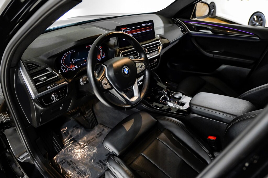 *Bluetooth / Hands Free Cell Phone*, *Moonroof/Sunroof, *Rear Backup Camera*, *Navigation*, *Leather*, *One Owner*, *Remainder of Factory Warranty*, *Apple Carplay/Android Auto, *Non Smoker*, X4 xDrive30i, 4D Sport Utility, 2.0L I4 TwinPower Turbo, 8-Speed Automatic Sport, AWD, Black, Black w/Perforated SensaTec Upholstery, Active Park Distance Control, Alloy wheels, Comfort Access Keyless Entry, Connected Package Pro, Convenience Package, Lumbar Support, Navigation System, Parking Assistance Package, Parking Assistant Plus, Rear-View Camera, Surround View w/3D View, Wheels: 19" x 7.5" Y-Spoke (Style 693), 12 Speakers, 3.39 Axle Ratio, 4-Wheel Disc Brakes, ABS brakes, Air Conditioning, AM/FM radio: SiriusXM with 360L, Anti-whiplash front head restraints, Apple CarPlay & Android Auto Compatibility, Auto High-beam Headlights, Auto-dimming door mirrors, Auto-dimming Rear-View mirror, Automatic temperature control, BMW Assist eCall, BMW TeleServices, Brake assist, Bumpers: body-color, Delay-off headlights, Driver door bin, Driver vanity mirror, Dual front impact airbags, Dual front side impact airbags, Electronic Stability Control, Emergency communication system: BMW Assist eCall, Enhanced USB & Bluetooth w/Smartphone Integration, Exterior Parking Camera Rear, Four wheel independent suspension, Front anti-roll bar, Front Bucket Seats, Front Center Armrest, Front dual zone A/C, Front reading lights, Fully automatic headlights, Garage door transmitter, Genuine wood dashboard insert, Genuine wood door panel insert, Heated door mirrors, Hi-Fi Sound System, Illuminated entry, Knee airbag, Leather steering wheel, Live Cockpit Pro w/Navi, Low tire pressure warning, Memory seat, Occupant sensing airbag, Outside temperature display, Overhead airbag, Overhead console, Panic alarm, Passenger door bin, Passenger vanity mirror, Perforated SensaTec Upholstery, Power door mirrors, Power driver seat, Power Front Seats, Power Liftgate, Power moonroof: Panorama, Power passenger seat, Power steering, Power windows, Radio data system, Radio: AM/FM Audio System, Rain sensing wipers, Rear air conditioning, Rear anti-roll bar, Rear reading lights, Rear seat center armrest, Rear window defroster, Remote keyless entry, Security system, SiriusXM w/360L, Speed control, Speed-sensing steering, Speed-Sensitive Wipers, Split folding rear seat, Sport Seats, Sport steering wheel, Steering wheel mounted audio controls, Tachometer, Telescoping steering wheel, Tilt steering wheel, Traction control, Trip computer, Turn signal indicator mirrors, Variably intermittent wipers, WiFi Hotspot, Go Luxury Black Out Package, Original Msrp $59045, X4 xDrive30i, 4D Sport Utility, 2.0L I4 TwinPower Turbo, 8-Speed Automatic Sport, AWD, Black, Black w/Perforated SensaTec Upholstery, Active Park Distance Control, Alloy wheels, Comfort Access Keyless Entry, Connected Package Pro, Convenience Package, Lumbar Support, Navigation System, Parking Assistance Package, Parking Assistant Plus, Rear-View Camera, Surround View w/3D View, Wheels: 19" x 7.5" Y-Spoke (Style 693).