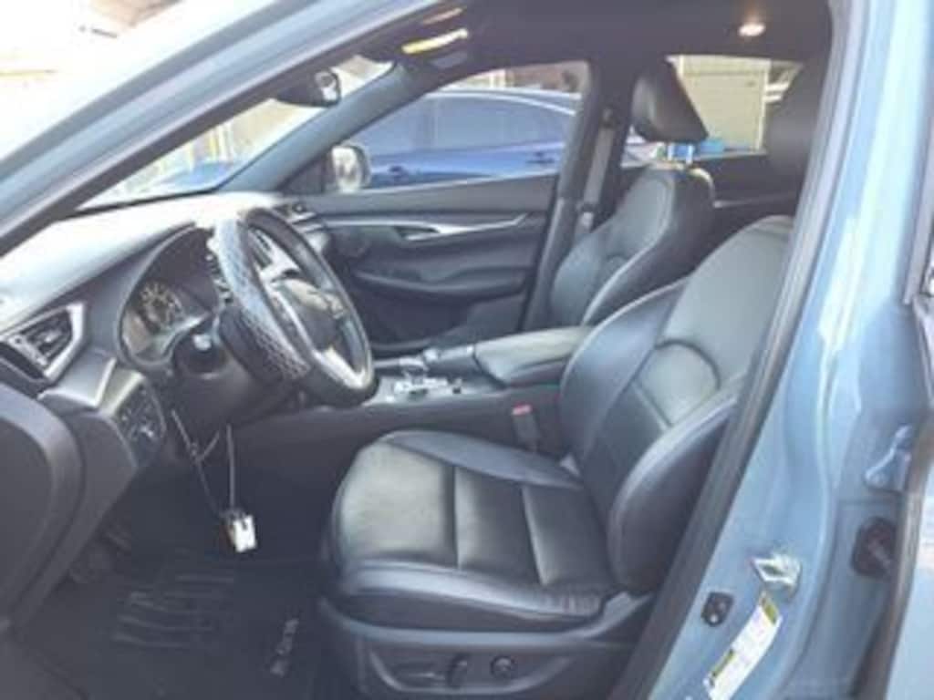 *Bluetooth / Hands Free Cell Phone*, *Moonroof/Sunroof, *Rear Backup Camera*, *Navigation*, *Leather*, *One Owner*, *Remainder of Factory Warranty*, *Apple Carplay/Android Auto, *Non Smoker*, QX55 LUXE, 4D Sport Utility, I4, CVT, AWD, Slate Gray, Graphite Leather, Accent Package, Black Film Rear Bumper Protector, Cargo Net, Cargo Package, Matte Chrome Bodyside Molding, Matte Chrome Mirror Caps, Reversible Cargo Mat, 4-Wheel Disc Brakes, 5.846 Axle Ratio, 6 Speakers, ABS brakes, Air Conditioning, Alloy wheels, AM/FM radio: SiriusXM, Auto High-beam Headlights, Auto-dimming Rear-View mirror, Automatic temperature control, Black Splash Guards (Set of 4), Brake assist, Bumpers: body-color, Carpeted Floor Mats, CD player, Delay-off headlights, Driver door bin, Driver vanity mirror, Dual front impact airbags, Dual front side impact airbags, Electronic Stability Control, Emergency communication system: INFINITI InTouch, Exterior Parking Camera Rear, Four wheel independent suspension, Front anti-roll bar, Front Bucket Seats, Front Center Armrest, Front dual zone A/C, Front fog lights, Front reading lights, Fully automatic headlights, Garage door transmitter: HomeLink, Heated door mirrors, Heated Front Bucket Seats, Heated front seats, Illuminated entry, Knee airbag, Leather Shift Knob, Leather steering wheel, Leather-Appointed Seat Trim, Low tire pressure warning, Occupant sensing airbag, Outside temperature display, Overhead airbag, Overhead console, Panic alarm, Passenger door bin, Passenger vanity mirror, Power door mirrors, Power driver seat, Power Liftgate, Power moonroof, Power passenger seat, Power steering, Power windows, Premium Paint, Radio data system, Radio: AM/FM Audio System, Rear anti-roll bar, Rear Parking Sensors, Rear reading lights, Rear seat center armrest, Rear side impact airbag, Rear window defroster, Rear window wiper, Remote keyless entry, Security system, Speed control, Speed-sensing steering, Speed-Sensitive Wipers, Split folding rear seat, Spoiler, Steering wheel mounted audio controls, Tachometer, Telescoping steering wheel, Tilt steering wheel, Traction control, Trip computer, Turn signal indicator mirrors, Variably intermittent wipers, Wheels: 20" x 8.5" Machine Finished Aluminum Alloy, Go Luxury Black Out Package, Go Lux Black Out Package, Original Msrp $51615, QX55 LUXE, 4D Sport Utility, I4, CVT, AWD, Slate Gray, Graphite Leather, Accent Package, Black Film Rear Bumper Protector, Cargo Net, Cargo Package, Matte Chrome Bodyside Molding, Matte Chrome Mirror Caps, Reversible Cargo Mat.