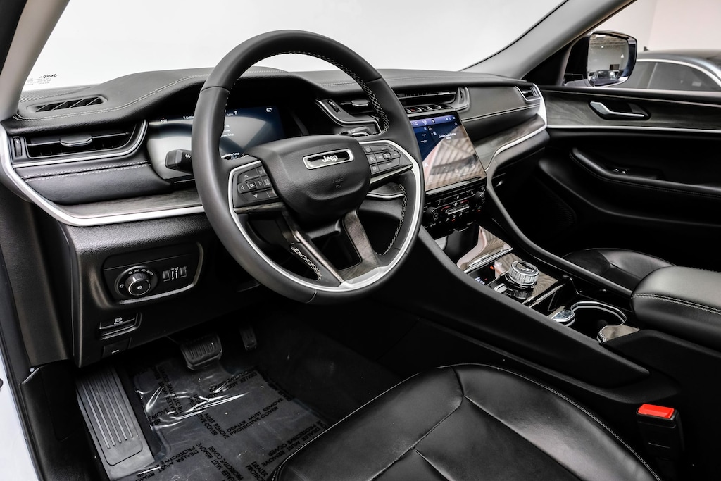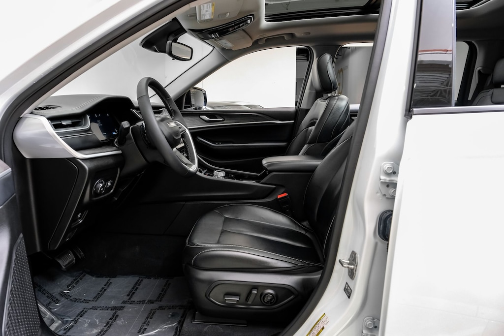 *Bluetooth / Hands Free Cell Phone*, *Moonroof/Sunroof, *Rear Backup Camera*, *Navigation*, *Leather*, *One Owner*, *Remainder of Factory Warranty*, *Apple Carplay/Android Auto, *Non Smoker*, Grand Cherokee L Limited, 4D Sport Utility, 3.6L V6 24V VVT, 8-Speed Automatic, 4WD, Bright White Clearcoat, Global Black Leather, Dual-Pane Panoramic Sunroof, Interior Rear Facing Camera, Navigation System, Quick Order Package 23E, 3.45 Rear Axle Ratio, 3rd row seats: split-bench, 4-Wheel Disc Brakes, 6 Speakers, ABS brakes, Active Noise Control System, Air Conditioning, Alloy wheels, AM/FM radio: SiriusXM with 360L, Anti-whiplash front head restraints, Audio memory, Auto High-beam Headlights, Automatic temperature control, Brake assist, Bumpers: body-color, Capri Leatherette Seats, Compass, Delay-off headlights, Driver door bin, Driver vanity mirror, Dual front impact airbags, Dual front side impact airbags, Electronic Stability Control, Emergency communication system, Four wheel independent suspension, Front anti-roll bar, Front Bucket Seats, Front Center Armrest w/Storage, Front dual zone A/C, Front fog lights, Front License Plate Bracket, Front reading lights, Fully automatic headlights, Garage door transmitter, Heated door mirrors, Heated front seats, Heated rear seats, Heated steering wheel, Illuminated entry, Knee airbag, Low tire pressure warning, Manual Fold Seatbacks, Memory seat, Molded In Color Black/Gloss Black Roof Rails, Normal Duty Suspension, Occupant sensing airbag, Outside temperature display, Overhead airbag, Overhead console, Panic alarm, ParkView Rear Back-Up Camera, Passenger door bin, Passenger vanity mirror, Power door mirrors, Power driver seat, Power Liftgate, Power passenger seat, Power steering, Power windows, Radio data system, Radio: Uconnect 5 Nav w/10.1" Display, Rear air conditioning, Rear anti-roll bar, Rear reading lights, Rear window defroster, Rear window wiper, Reclining 3rd row seat, Remote keyless entry, Security system, Speed control, Speed-Sensitive Wipers, Split folding rear seat, Spoiler, Steering wheel mounted audio controls, Tachometer, Telescoping steering wheel, Tilt steering wheel, Traction control, Trip computer, Turn signal indicator mirrors, Variably intermittent wipers, Voltmeter, Wheels: 18" x 8.0" Fully Painted Aluminum, Go Luxury Black Out Package, Original Msrp $55790, Grand Cherokee L Limited, 4D Sport Utility, 3.6L V6 24V VVT, 8-Speed Automatic, 4WD, Bright White Clearcoat, Global Black Leather, Dual-Pane Panoramic Sunroof, Interior Rear Facing Camera, Navigation System, Quick Order Package 23E.