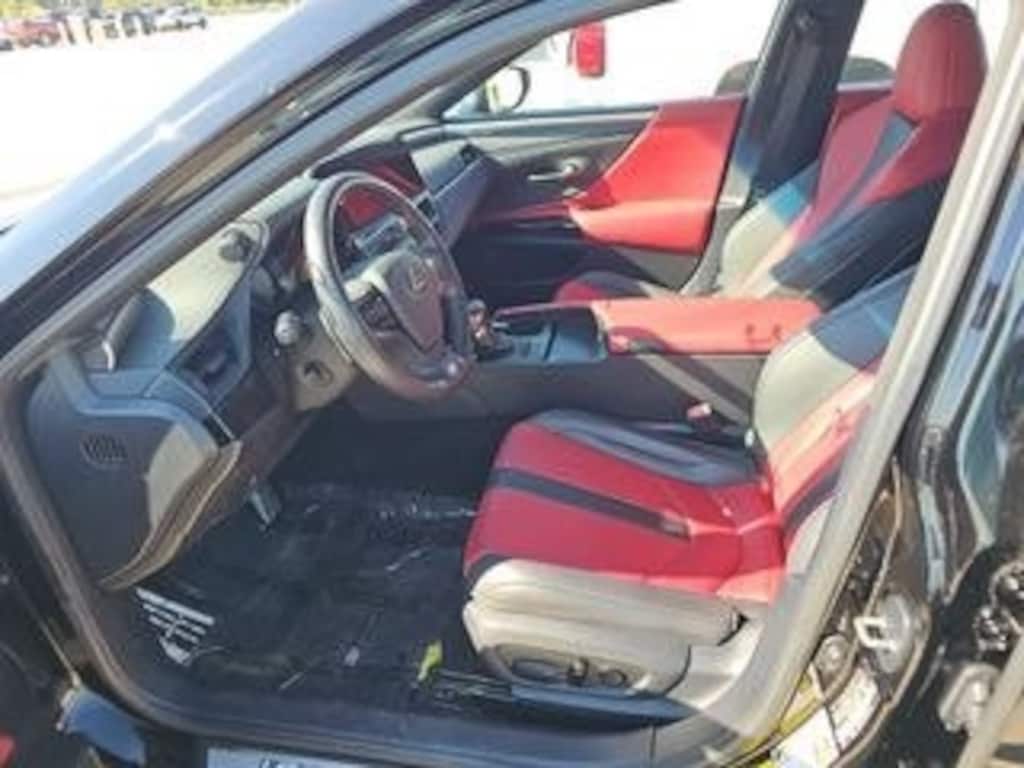 *Bluetooth / Hands Free Cell Phone*, *Moonroof/Sunroof, *Rear Backup Camera*, *Navigation*, *Leather*, *One Owner*, *Remainder of Factory Warranty*, *Apple Carplay/Android Auto, *Non Smoker*, ES 350 F Sport, 4D Sedan, 3.5L V6 DOHC 24V, 8-Speed Automatic, FWD, Black, Circuit Red w/Hadori Aluminum w/Perforated NuLuxe Seat Trim, Accessory Package (Z1), Adaptive Variable Suspension, Alloy Wheel Locks, Alloy wheels, Cargo Net, Carpet Trunk Mat, Electrochromic Rear-View Mirror, F SPORT Handling Package, F SPORT Heated Leather 3-Spoke Steering Wheel, Front & Rear Performance Rods, Key Gloves, Navigation, Navigation System, Power moonroof, Power Tilt/Telescoping Steering Wheel w/Memory, Rain Sensing Wipers, Rear Spoiler, Wheels: 19" x 8J Split-5-Spoke Alloy, Windshield De-Icer, Wireless Charger, 10 Speakers, 10-Way Power Adjustable Heated & Vent Front Seats, 4-Wheel Disc Brakes, ABS brakes, Air Conditioning, AM/FM radio: SiriusXM, Auto High-beam Headlights, Auto tilt-away steering wheel, Auto-dimming door mirrors, Auto-dimming Rear-View mirror, Automatic temperature control, Brake assist, Bumpers: body-color, Compass, Delay-off headlights, Driver door bin, Driver vanity mirror, Dual front impact airbags, Dual front side impact airbags, Electronic Stability Control, Emergency communication system, Exterior Parking Camera Rear, Four wheel independent suspension, Front anti-roll bar, Front Bucket Seats, Front Center Armrest, Front dual zone A/C, Front reading lights, Fully automatic headlights, Garage door transmitter: HomeLink, Heated door mirrors, Heated front seats, Heated steering wheel, Illuminated entry, Knee airbag, Leather Shift Knob, Leather steering wheel, Low tire pressure warning, Memory seat, Occupant sensing airbag, Outside temperature display, Overhead airbag, Overhead console, Panic alarm, Parking Support Alert/Brake, Passenger door bin, Passenger vanity mirror, Perforated NuLuxe Seat Trim, Power door mirrors, Power driver seat, Power passenger seat, Power steering, Power windows, Radio data system, Radio: Lexus Interface w/8" Multimedia Touch Scrn, Rain sensing wipers, Rear anti-roll bar, Rear reading lights, Rear seat center armrest, Rear side impact airbag, Rear window defroster, Remote keyless entry, Security system, Speed control, Speed-sensing steering, Spoiler, Sport steering wheel, Steering wheel memory, Steering wheel mounted audio controls, Tachometer, Telescoping steering wheel, Tilt steering wheel, Traction control, Trip computer, Turn signal indicator mirrors, Variably intermittent wipers, Ventilated front seats, Wireless Apple CarPlay/Wireless Android Auto, Go Luxury Black Out Package, Original Msrp $50100, ES 350 F Sport, 4D Sedan, 3.5L V6 DOHC 24V, 8-Speed Automatic, FWD, Black, Circuit Red w/Hadori Aluminum w/Perforated NuLuxe Seat Trim, Accessory Package (Z1), Adaptive Variable Suspension, Alloy Wheel Locks, Alloy wheels, Cargo Net, Carpet Trunk Mat, Electrochromic Rear-View Mirror, F SPORT Handling Package, F SPORT Heated Leather 3-Spoke Steering Wheel, Front & Rear Performance Rods, Key Gloves, Navigation, Navigation System, Power moonroof, Power Tilt/Telescoping Steering Wheel w/Memory, Rain Sensing Wipers, Rear Spoiler, Wheels: 19" x 8J Split-5-Spoke Alloy, Windshield De-Icer, Wireless Charger.