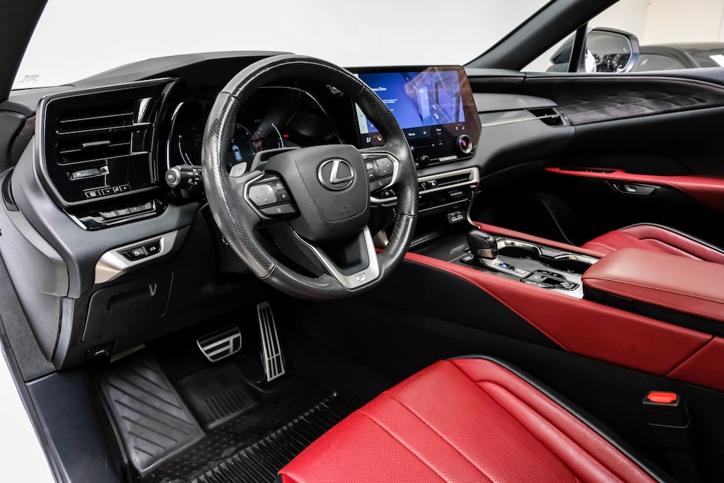 *Bluetooth / Hands Free Cell Phone*, *Service Records Available*, *Moonroof/Sunroof, *Rear Backup Camera*, *Navigation*, *Leather*, *One Owner*, *Remainder of Factory Warranty*, *Apple Carplay/Android Auto, *Non Smoker*, *New Tires*, 4D Sport Utility, 2.4L I4 PDI Turbocharged DOHC 16V LEV3-SULEV30 275hp, 8-Speed Automatic, AWD, White, Rioja Red w/Dark Graphite Aluminum w/F SPORT NuLuxe Seat Trim, Alloy wheels, Cold Area Package, Convenience Package, Electrochromic Heated Outside Rearview Mirror, F SPORT Handling Package, Illuminated Door Sills, Lane Change Assist w/Lane Keeping Assist System, Navigation System, Radio: Lexus Interface w/14" HD Touchscreen Display, Technology Package, 12 Speakers, 3.33 Axle Ratio, 4-Wheel Disc Brakes, ABS brakes, Air Conditioning, AM/FM radio: SiriusXM, Anti-whiplash front head restraints, Auto High-beam Headlights, Auto-dimming door mirrors, Auto-dimming Rear-View mirror, Automatic temperature control, Brake assist, Bumpers: body-color, Compass, Delay-off headlights, Driver door bin, Driver vanity mirror, Dual front impact airbags, Dual front side impact airbags, Electronic Stability Control, Emergency communication system: Safety Connect (10-year trial), Exterior Parking Camera Rear, Four wheel independent suspension, Front anti-roll bar, Front Bucket Seats, Front Center Armrest, Front dual zone A/C, Front fog lights, Front reading lights, Fully automatic headlights, Garage door transmitter: HomeLink, Genuine wood console insert, Heated door mirrors, Heated front seats, Illuminated entry, Leather Shift Knob, Leather steering wheel, Low tire pressure warning, Occupant sensing airbag, Outside temperature display, Overhead airbag, Overhead console, Panic alarm, Passenger door bin, Passenger vanity mirror, Power door mirrors, Power driver seat, Power Liftgate, Power passenger seat, Power steering, Power windows, Radio data system, Rain sensing wipers, Rear air conditioning, Rear anti-roll bar, Rear reading lights, Rear seat center armrest, Rear side impact airbag, Rear window defroster, Rear window wiper, Remote keyless entry, Security system, Speed control, Speed-sensing steering, Split folding rear seat, Spoiler, Steering wheel mounted audio controls, Tachometer, Telescoping steering wheel, Tilt steering wheel, Traction control, Trip computer, Turn signal indicator mirrors, Variably intermittent wipers, Wireless Apple CarPlay/Wireless Android Auto, Go Lux Black Out Package, 4D Sport Utility, 2.4L I4 PDI Turbocharged DOHC 16V LEV3-SULEV30 275hp, 8-Speed Automatic, AWD, White, Rioja Red w/Dark Graphite Aluminum w/F SPORT NuLuxe Seat Trim, Alloy wheels, Cold Area Package, Convenience Package, Electrochromic Heated Outside Rearview Mirror, F SPORT Handling Package, Illuminated Door Sills, Lane Change Assist w/Lane Keeping Assist System, Navigation System, Radio: Lexus Interface w/14" HD Touchscreen Display, Technology Package.