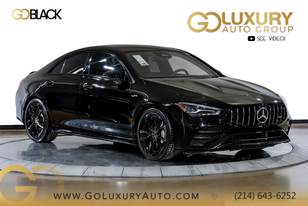 *Bluetooth / Hands Free Cell Phone*, *Moonroof/Sunroof, *Rear Backup Camera*, *Navigation*, *Leather*, *One Owner*, *Remainder of Factory Warranty*, *Apple Carplay/Android Auto, *Non Smoker*, CLA CLA 35 AMG® 4MATIC®, 4D Coupe, 2.0L I4 Turbocharged, 8-Speed Automatic, 4MATIC®, Black, Black w/MB-Tex Upholstery, Alloy wheels, AMG® Night Package, Leather steering wheel, Leather Upholstery, Navigation System, Power moonroof, Wheels: 19" AMG® Twin 5-Spoke in Matte Black, 12 Speakers, 4-Wheel Disc Brakes, ABS brakes, Air Conditioning, AM/FM radio: SiriusXM, Apple CarPlay®/Android Auto®, Auto High-beam Headlights, Auto-dimming Rear-View mirror, Automatic temperature control, Brake assist, Brushed Aluminum Trim, Bumpers: body-color, Child-Seat-Sensing Airbag, Delay-off headlights, Driver door bin, Driver vanity mirror, Dual front impact airbags, Dual front side impact airbags, Electronic Stability Control, Emergency communication system: eCall Emergency System, Exterior Parking Camera Rear, Four wheel independent suspension, Front anti-roll bar, Front Bucket Seats, Front Center Armrest, Front dual zone A/C, Front reading lights, Fully automatic headlights, Garage door transmitter, Heated door mirrors, Heated front seats, Illuminated entry, Knee airbag, Low tire pressure warning, MB-Tex/Microfiber Upholstery, Memory seat, Occupant sensing airbag, Outside temperature display, Overhead airbag, Overhead console, Panic alarm, Passenger door bin, Passenger vanity mirror, Power door mirrors, Power driver seat, Power passenger seat, Power steering, Power windows, Radio data system, Radio: Burmester® Surround Sound System, Rain sensing wipers, Rear anti-roll bar, Rear fog lights, Rear reading lights, Rear seat center armrest, Rear window defroster, Remote keyless entry, Security system, SiriusXM Radio, Smartphone Integration, Speed control, Speed-sensing steering, Split folding rear seat, Spoiler, Sport steering wheel, Steering wheel mounted audio controls, Tachometer, Telescoping steering wheel, Tilt steering wheel, Traction control, Trip computer, Turn signal indicator mirrors, Variably intermittent wipers, Go Luxury Black Out Package, Original Msrp $60170, CLA CLA 35 AMG® 4MATIC®, 4D Coupe, 2.0L I4 Turbocharged, 8-Speed Automatic, 4MATIC®, Black, Black w/MB-Tex Upholstery, Alloy wheels, AMG® Night Package, Leather steering wheel, Leather Upholstery, Navigation System, Power moonroof, Wheels: 19" AMG® Twin 5-Spoke in Matte Black.
