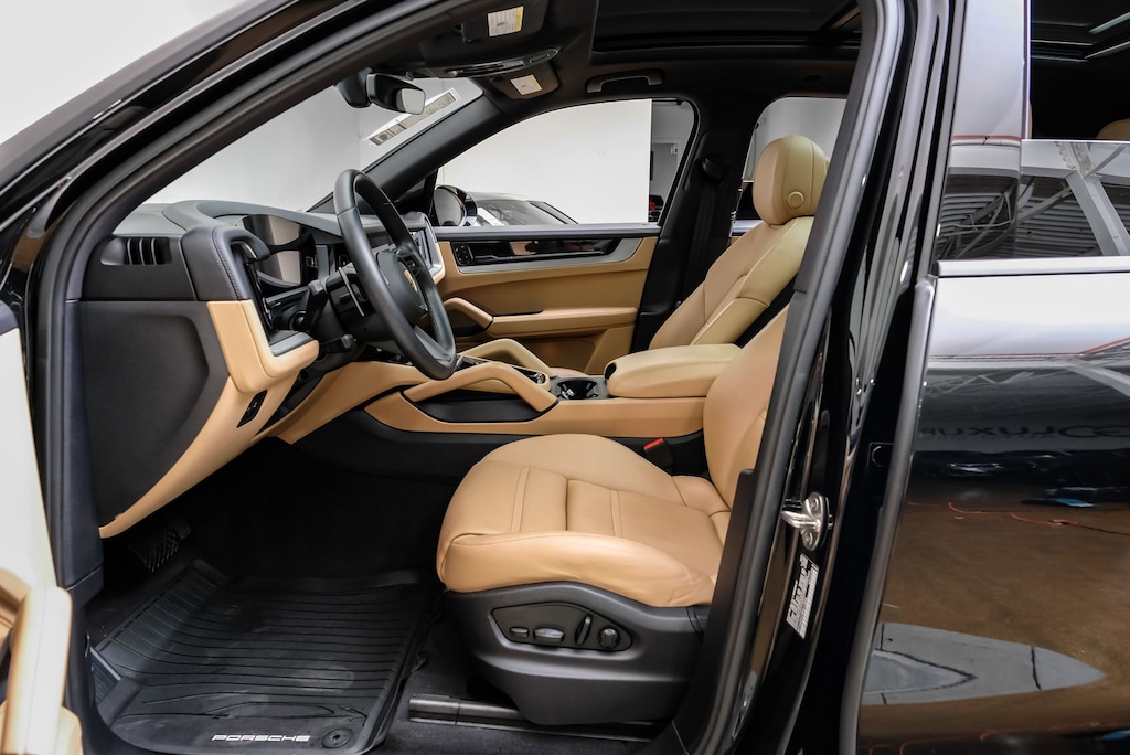 Indulge in the premium amenities that set this Cayenne apart. Enjoy the convenience of the Porsche Communication Management system, the comfort of 14-Way Power Seats with Comfort Memory, and the immersive sound of the BOSE Surround Sound System. The Panoramic Roof System and Ambient Lighting create a serene and inviting atmosphere, while the Heated Steering Wheel and Heated/Ventilated Front Seats provide year-round comfort.